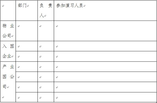 注意:要求產(chǎn)業(yè)園公司和物業(yè)公司所有人員參加消防演習(xí)。