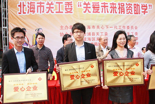 園區(qū)企業(yè)北海景光電子有限公司榮獲了“愛心企業(yè)”榮譽稱號,這是繼去年景光電子捐贈“女警護學(xué)崗”的又一獻(xiàn)愛心活動,同時是園區(qū)鼓勵企業(yè)積極響應(yīng)對“關(guān)愛未來捐資助學(xué)”的具體舉措。