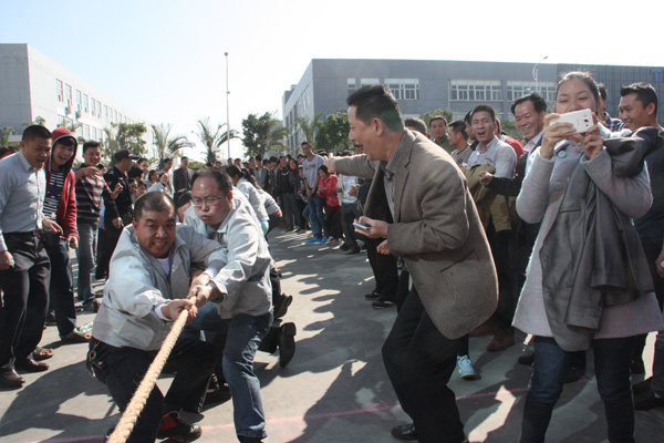 下午,一場別開生面的拔河比賽將活動推向小高潮。拔河比賽以促進企業(yè)交流為宗旨,豐富職工體育活動為目的,為企業(yè)搭建展現(xiàn)集體風采的舞臺,從而發(fā)揚團隊精神,增強凝聚力。此次比賽園區(qū)企業(yè)積極響應,共有11個企業(yè)組隊參加,特別是有些企業(yè)為了參賽,臨時停工,比賽結(jié)束后回單位繼續(xù)生產(chǎn),體現(xiàn)了園區(qū)大家庭的凝聚力。每支參賽隊伍共15人,其中男生10人,女生5人,實行淘汰制晉級方式。當比賽哨聲響起,各參賽隊員們口中一起高呼“一二,一二”,雙手緊握長繩,憋足勁拼命往后拉,拉拉隊在旁助陣加油,恨不得抓起繩子跟隊員們一起努力,各種加油聲、吶喊聲此起彼伏,回響至整個園區(qū)。經(jīng)過激烈較量,最終冠捷科技獲得冠軍,瑞達物業(yè)獲得亞軍。