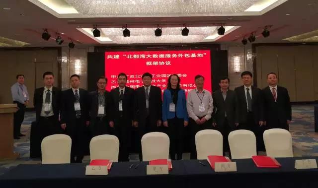 乘著北海市委務(wù)虛會(huì)的東風(fēng),2017年1月8日,在自治區(qū)工信委徐莉青副主任、北海市委常委、副市長曾子祥,桂林電子科技大學(xué)校長古天龍等領(lǐng)導(dǎo)見證下,清華大學(xué)國家服務(wù)外包人力資源研究院與桂林電子科技大學(xué)、北海工業(yè)園區(qū)管委會(huì)、中國電子北海產(chǎn)業(yè)園公司在深圳簽署合作協(xié)議,建設(shè)北部灣大數(shù)據(jù)及服務(wù)外包基地,標(biāo)志著以軟件及信息服務(wù)業(yè)為主導(dǎo)產(chǎn)業(yè)的中國電子北部灣信息港進(jìn)入新的發(fā)展階段。