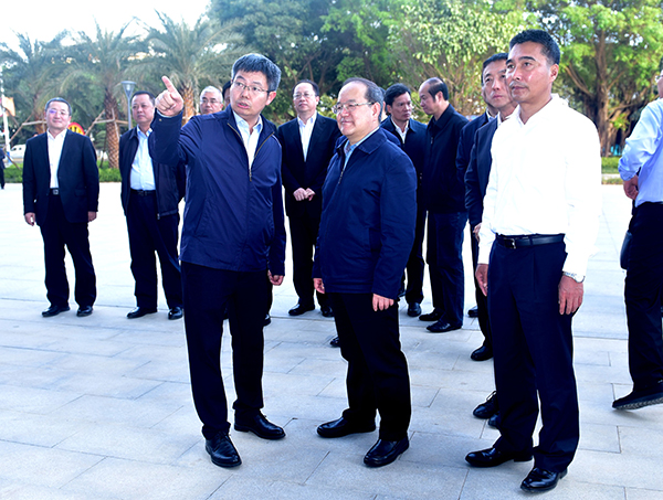 2020年1月2日下午,廣西壯族自治區(qū)黨委書(shū)記鹿心社在北海市委書(shū)記王乃學(xué),市長(zhǎng)蔡錦軍的陪同蒞臨中國(guó)電子北部灣信息港,深入調(diào)研京東、北海藝術(shù)交流中心等項(xiàng)目。