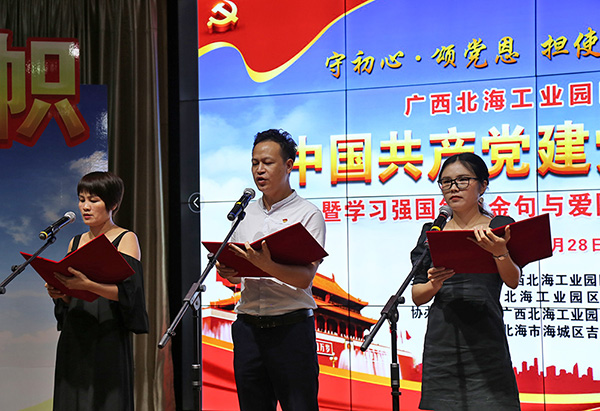 2020年6月28日下午,廣西北海工業(yè)園區(qū)迎慶中國共產(chǎn)黨建黨99周年暨學(xué)習(xí)強(qiáng)國每日金句與愛國詩詞朗誦讀比賽在工業(yè)園區(qū)舉行。中國電子北海產(chǎn)業(yè)園聯(lián)合黨支部組織支部黨員及代表參賽,經(jīng)過精彩角逐,榮獲比賽二等獎(jiǎng)。